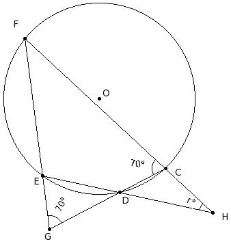 In the given figure, O is the centre of the circle . If ∠DGE = 70° and ∠DCF = 70°, find ∠CHD