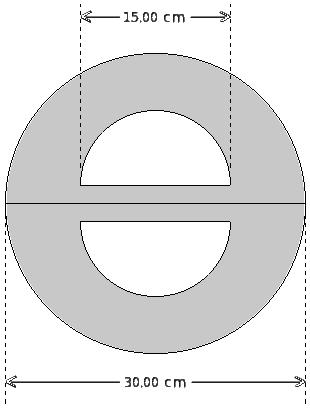 If the inner and outer radii of a ring are 7.00 cm and 10.00 cm respectively, the inner circle area is