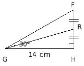 In the given figure, △FGH is a right angle triangle with ∠H = 90° and GH = 14 cm. R is the mid-point of FH. Find RH