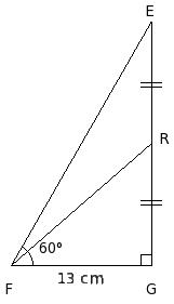 In the given figure, △EFG is a right angle triangle with ∠G = 90° and FG = 13 cm. R is the mid-point of EG. Find ∠RFE using tables.