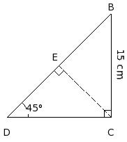 In the given figure, △BDC is right angled at C. If BC = 15 cm and ∠D = 45°, find BE