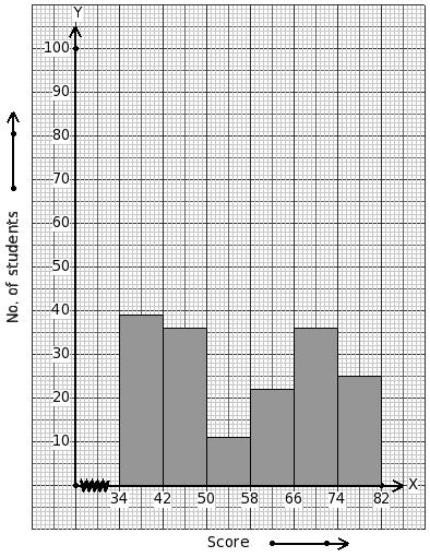 Scores of 169 students are given below. Identify the class mark table for the given histogram.