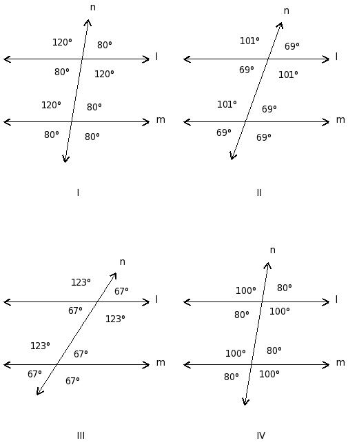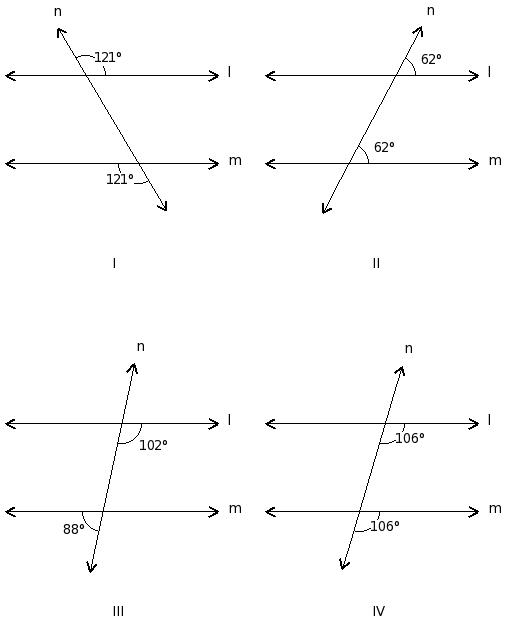 In which of the figures given bellow, l ∦ m(not parallel)?