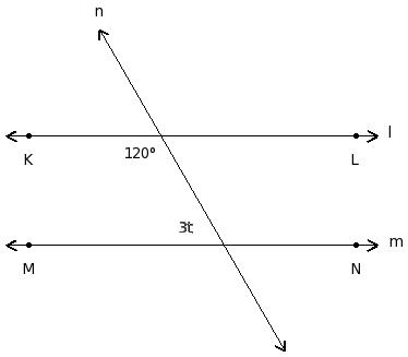 In the given figure l ∥ m. Find the value of 't'