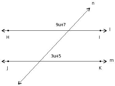 In the given figure l ∥ m. Find the value of 'u'