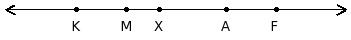 K,M,X,F,A are points on the line