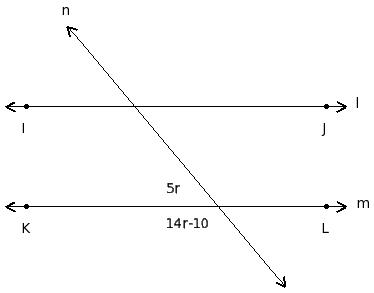 In the given figure l ∥ m. Find the value of 'r'