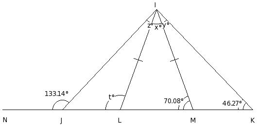 In the given figure, if IL = MI, find the values of x , y , z and t