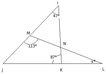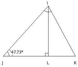 In the given figure , if LI ⟂ JK and ∠IJL = 47.73°, find ∠LIJ