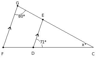 In the given figure, it is given that ED ∥ GF , ∠EGF = 80° and ∠EDC = 71°. Find the value of x.