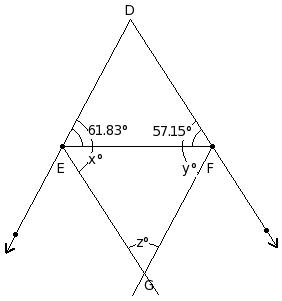 ∠E = 107.74° , ∠F = 36.13° , ∠G = 36.13°