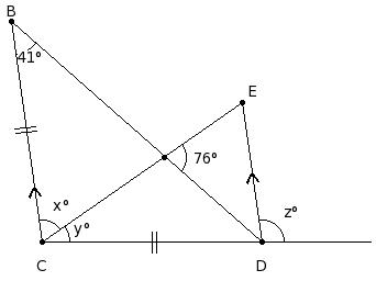 In the given figure, find the values of x ,y and z.
