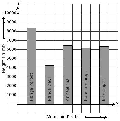 Given below is the column-graph showing heights of some mountain peaks. Find the mountain that has 6436 m height.