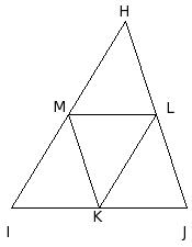 In the given figure, points K , L and M are the mid-points of sides IJ, JH and HI of △HIJ. Which of the following are true?