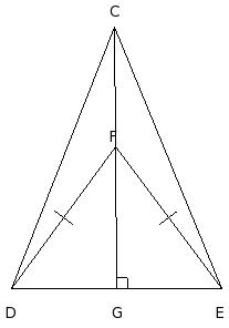 In the given figure, △FDE is an isosceles triangle. CG ⟂ DE passing through F. △CFD ≅ △CFE by which property?