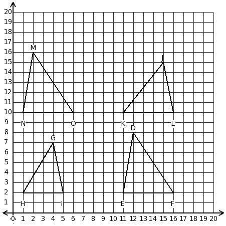 Consider the following triangles. Which two triangles have the same area?