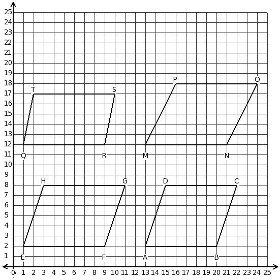 Consider the following parallelograms. Which two parallelograms have the same area?