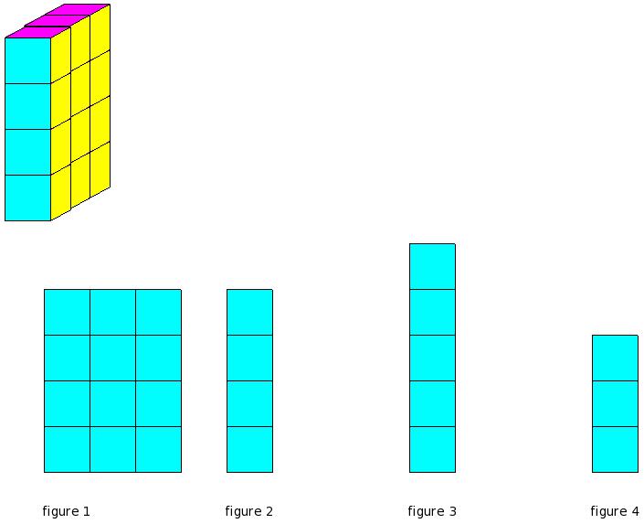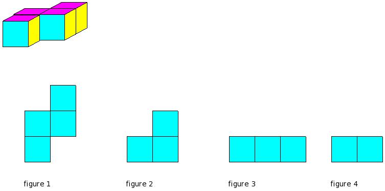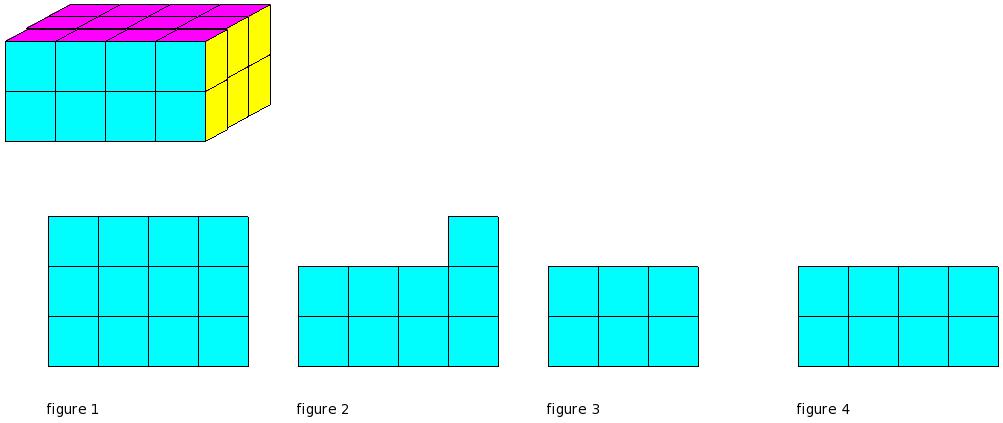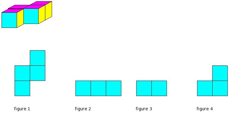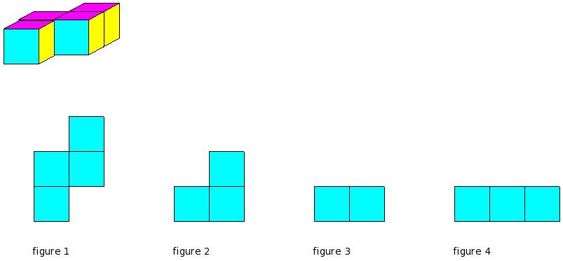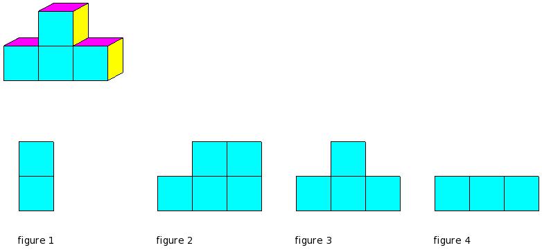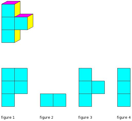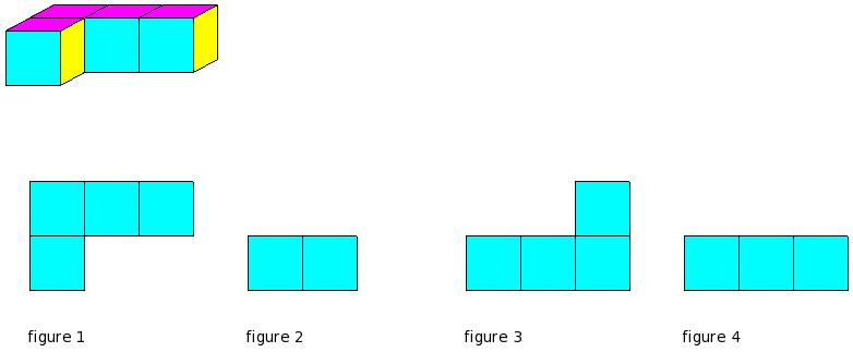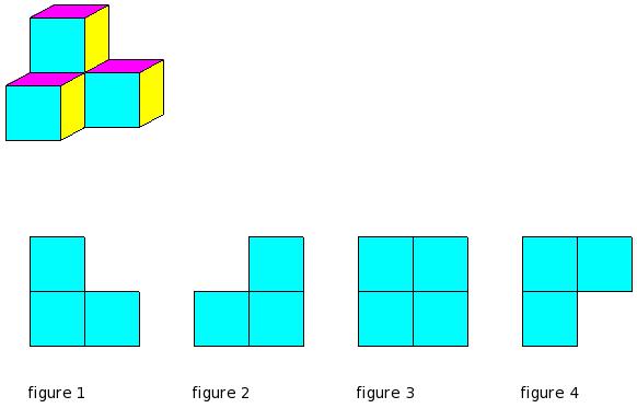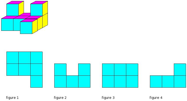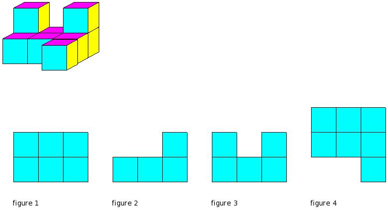 Which of the figures represent the front view of the given 3-D figure?