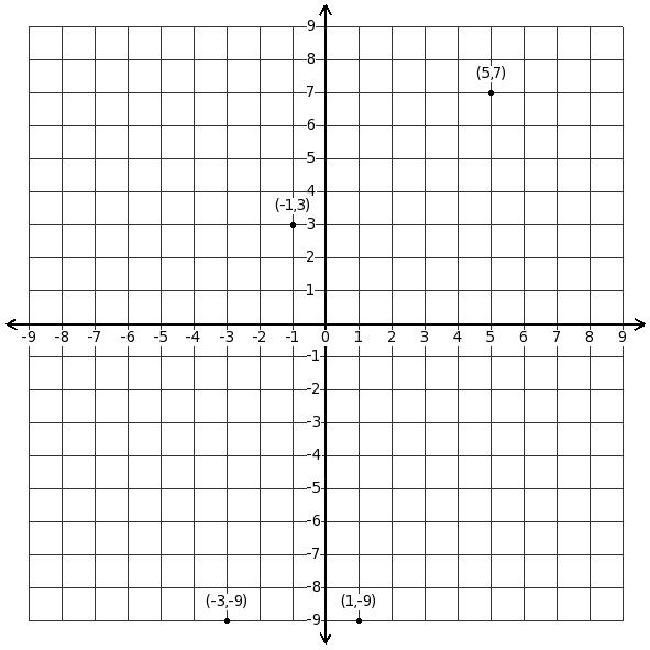 Which of the points (3,9), (-5,9), (-9,-4) and (3,-8) belong to the first quadrant?