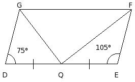 In the given figure, DEFG is a parallelogram such that Q is the mid-point of DE and DE = 2GD. Find ∠GQF