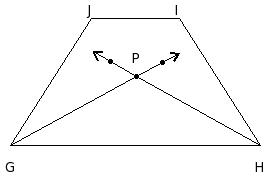 GHIJ is an isosceles trapezium. GP and HP are angular bisector of ∠G & ∠H. If ∠G = 57°, find ∠GPH