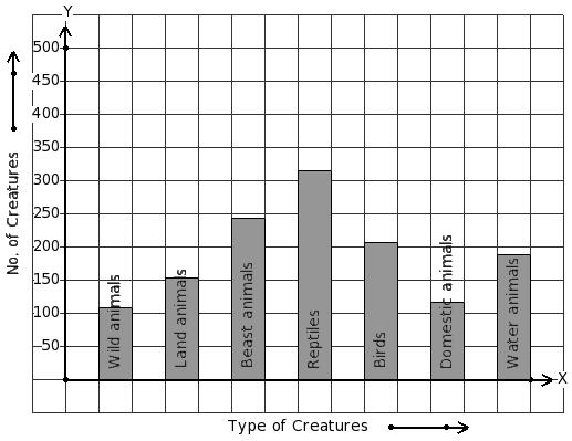 There are 1332 creatures in a zoo as shown in the bar graph. Identify the table for the given bar diagram.