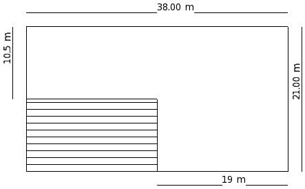 Suppose a die is thrown on a rectangular region as shown below. What is the probability that it will land inside the circle of diameter 6.00 cm?