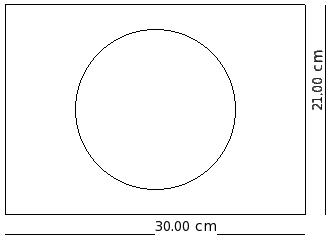 Suppose a die is thrown on a rectangular region as shown below. What is the probability that it will land inside the circle of diameter 16.00 cm?