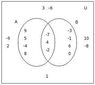 If μ = {-2,8,-9,-8,7,0,5,-3,3,-4,4,-5,-7,9,2}, A = {-2,8,-9,-8,7,0,5} and B = {-3,3,-2,-4}, find n((A ∪ B) − (A ∩ B))