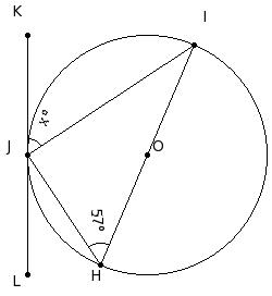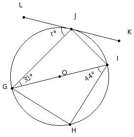 In the given figure, O is the centre of the circle and KL is the tangent at J. If ∠IGJ = 31° and ∠GIH = 44°, find ∠LJG