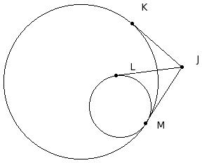 In the given figure, JM is the common tangent to the two circles. JK & JL are also tangents. Given JK = 10 cm, find JL