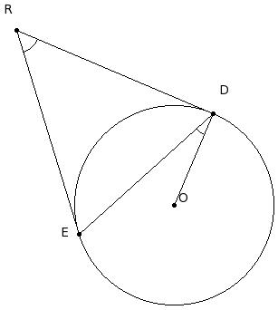 In the given figure, DR & ER are tangents to the circle with centre O. Given ∠R = 50°, find ∠D