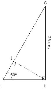 In the given figure, △GIH is right angled at H. If GH = 25 cm and ∠I = 60°, find IJ