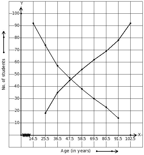 The following ogive shows the number of casualties of different age groups due to accidents in a city. Estimate the median.